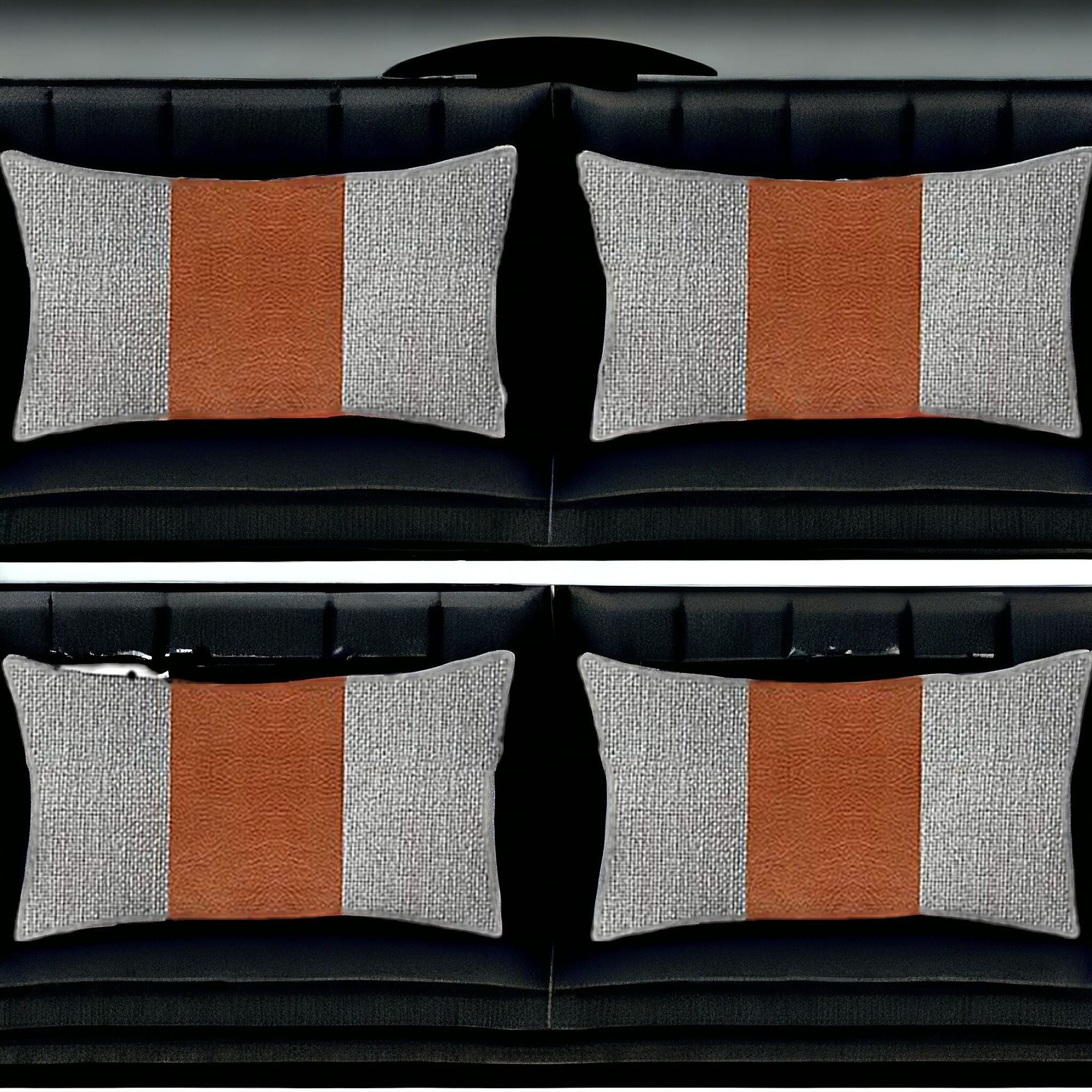 Set Of Four 20" X 12" Grey And Brown Polyester Geometric Zippered Pillow