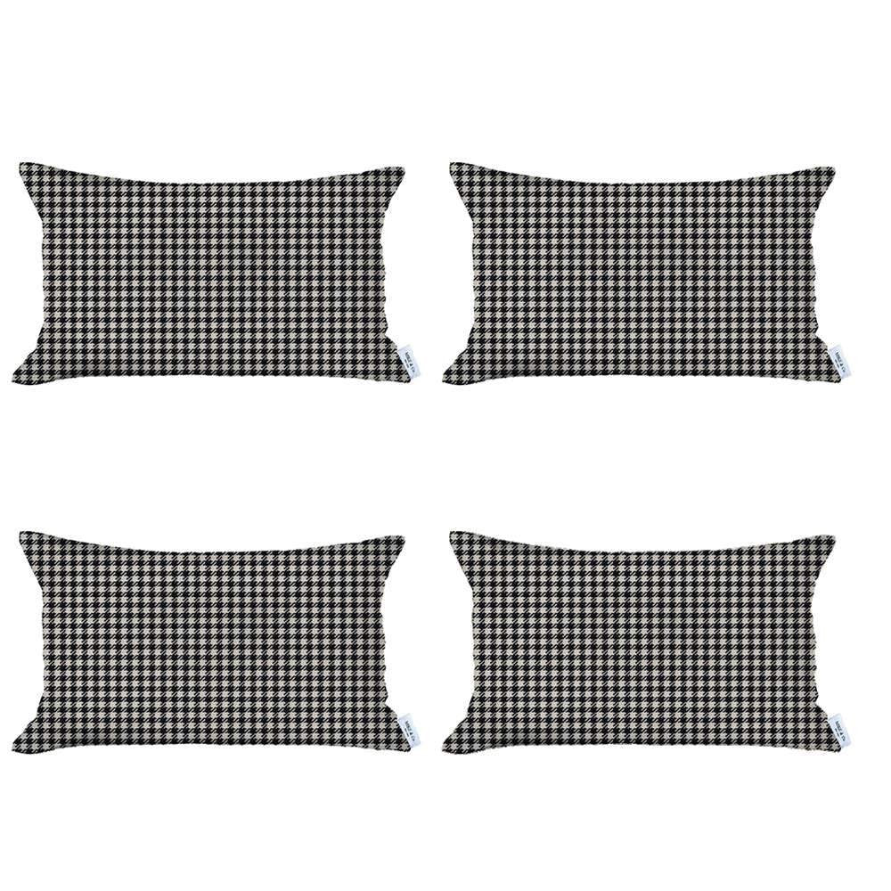 Set Of Four 20" X 12" Grey Polyester Houndstooth Zippered Pillow