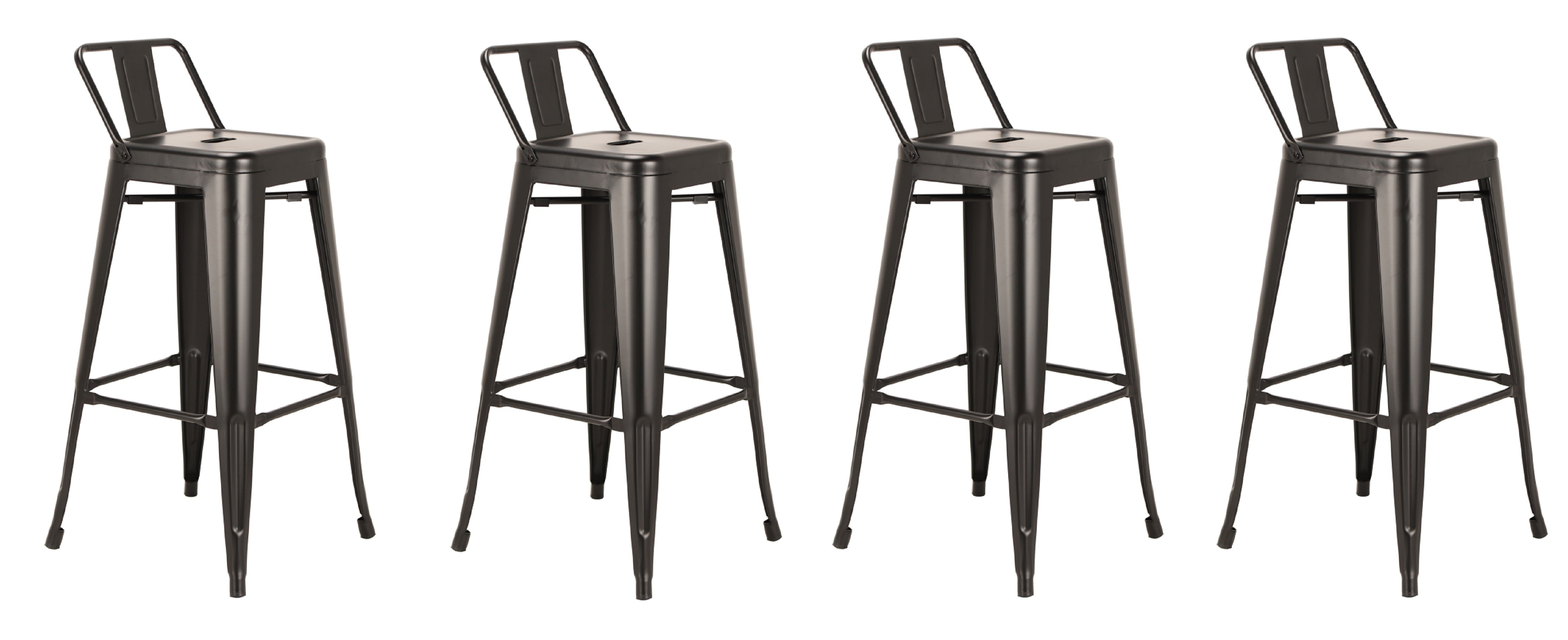 Comfort and design come together nicely in this set of four 26-inch black metal low back counter...