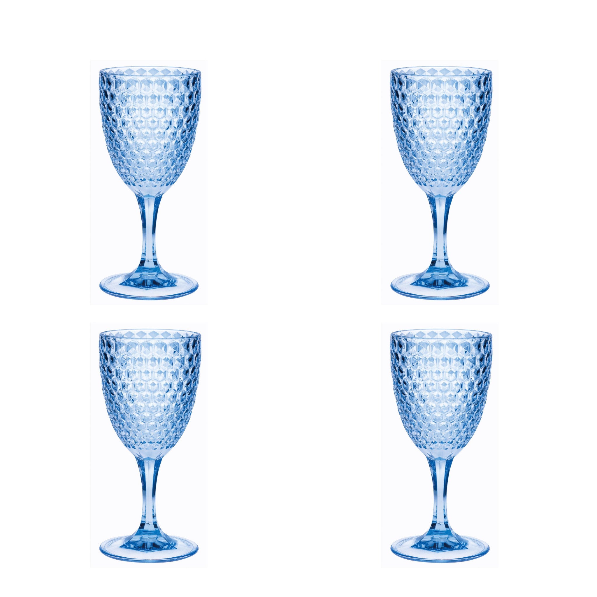 Set of Four Blue Diamond Acrylic Stemmed All Purpose Wine Glass