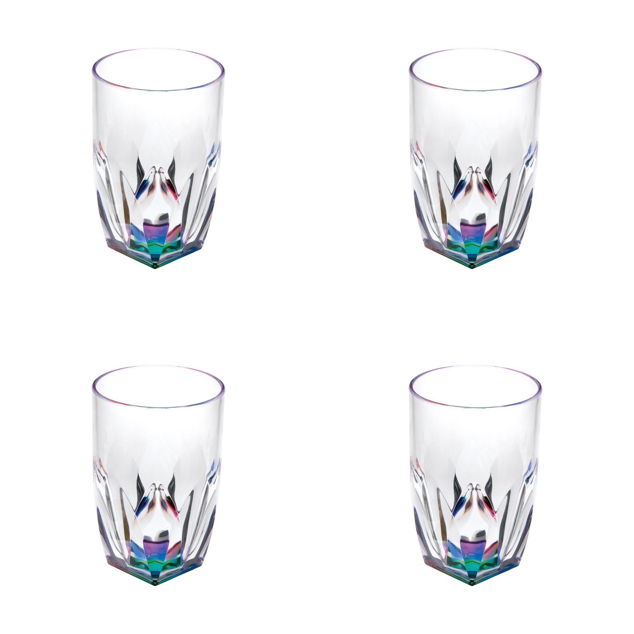Set of Four Clear and Rainbow Geometric Acrylic Highball Glasses