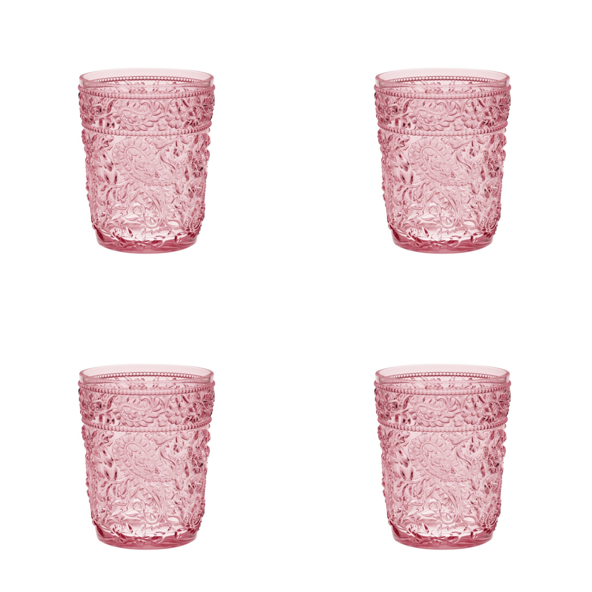 Set of Four Pink Paisley Acrylic Stemless Whiskey Glasses