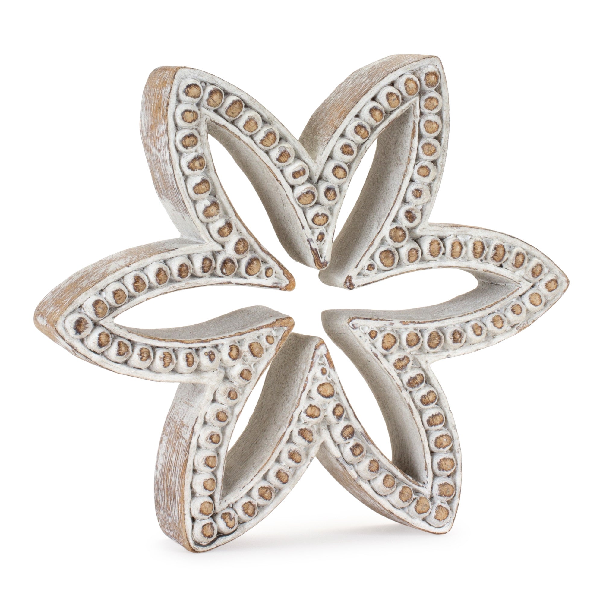 Set Of Three 7" Brown and White Polyresin Flower Figurine