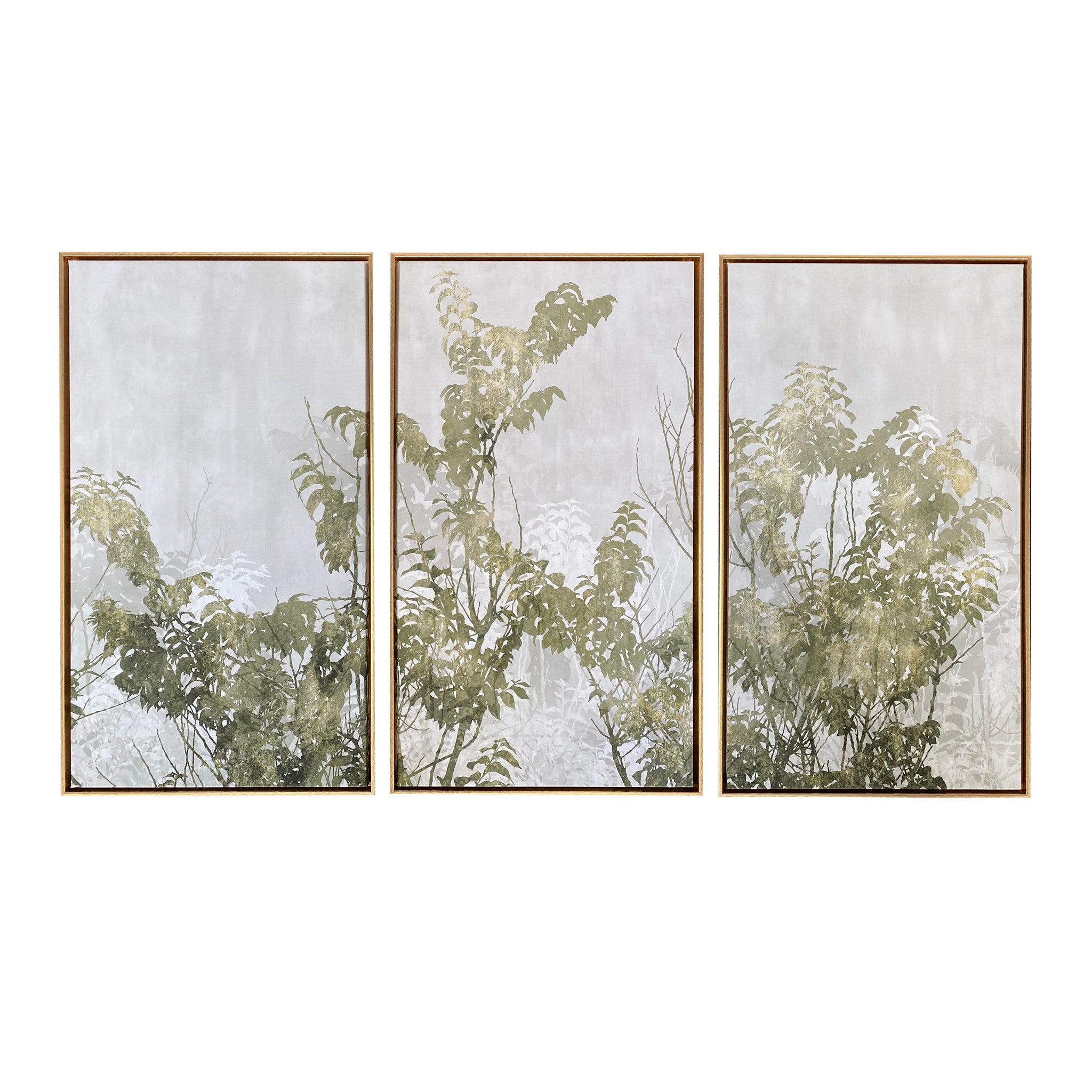 Set of Three Botanical Gold Floater Frame Painting Wall Art