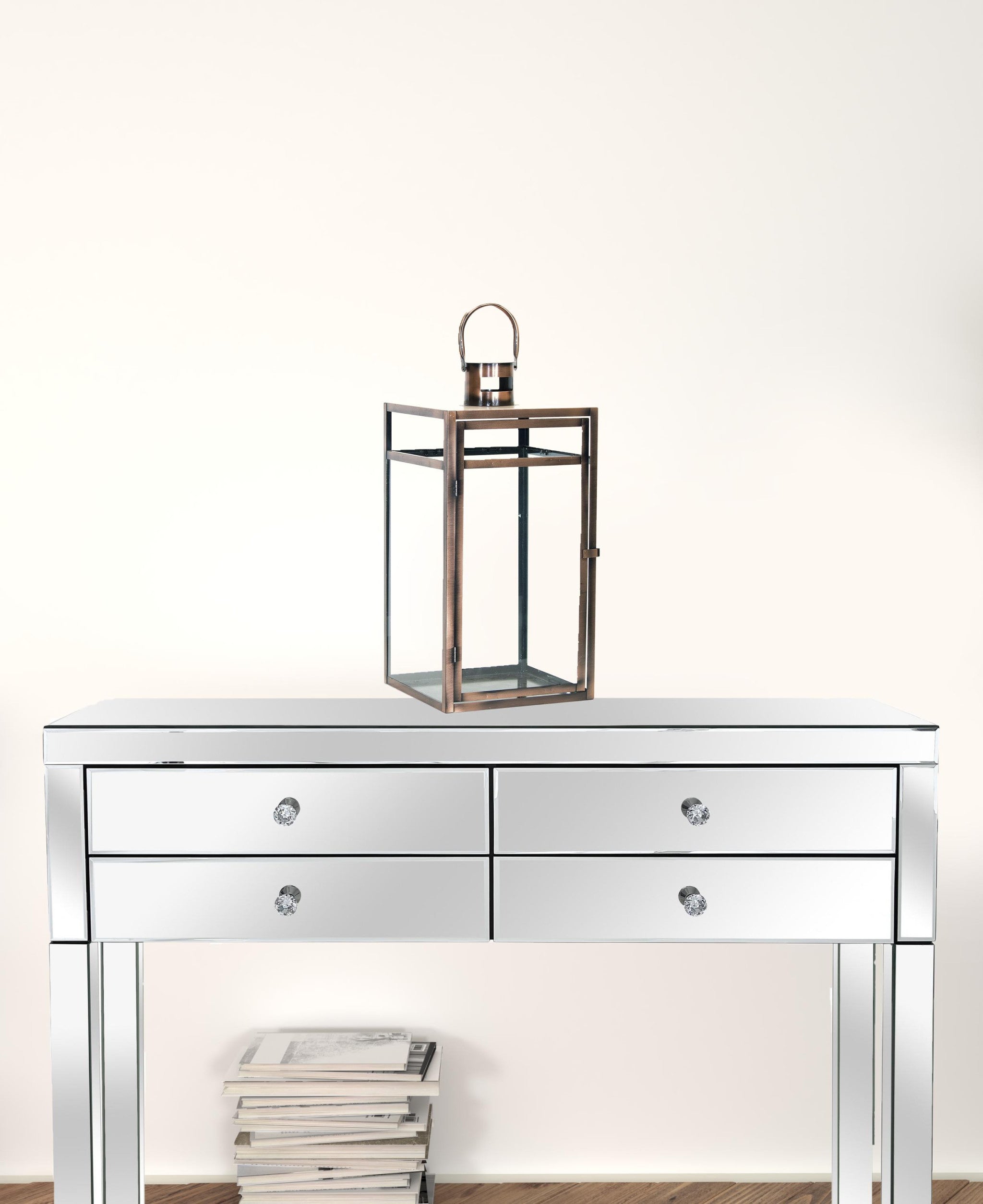 Set Of Three Copper Flameless Floor Lantern Candle Holder