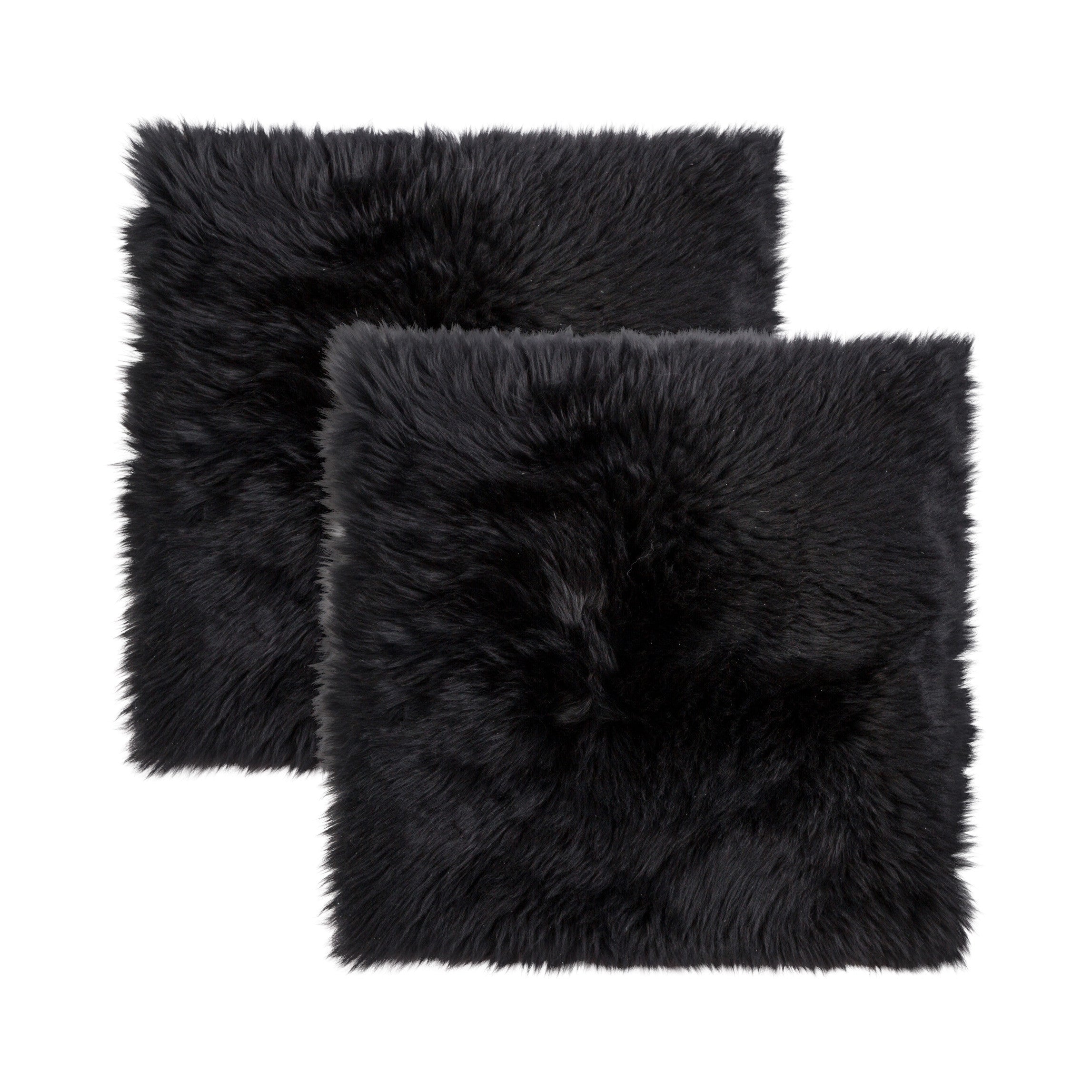 Set Of Two 17" X 17" Black Wool Chair Pads