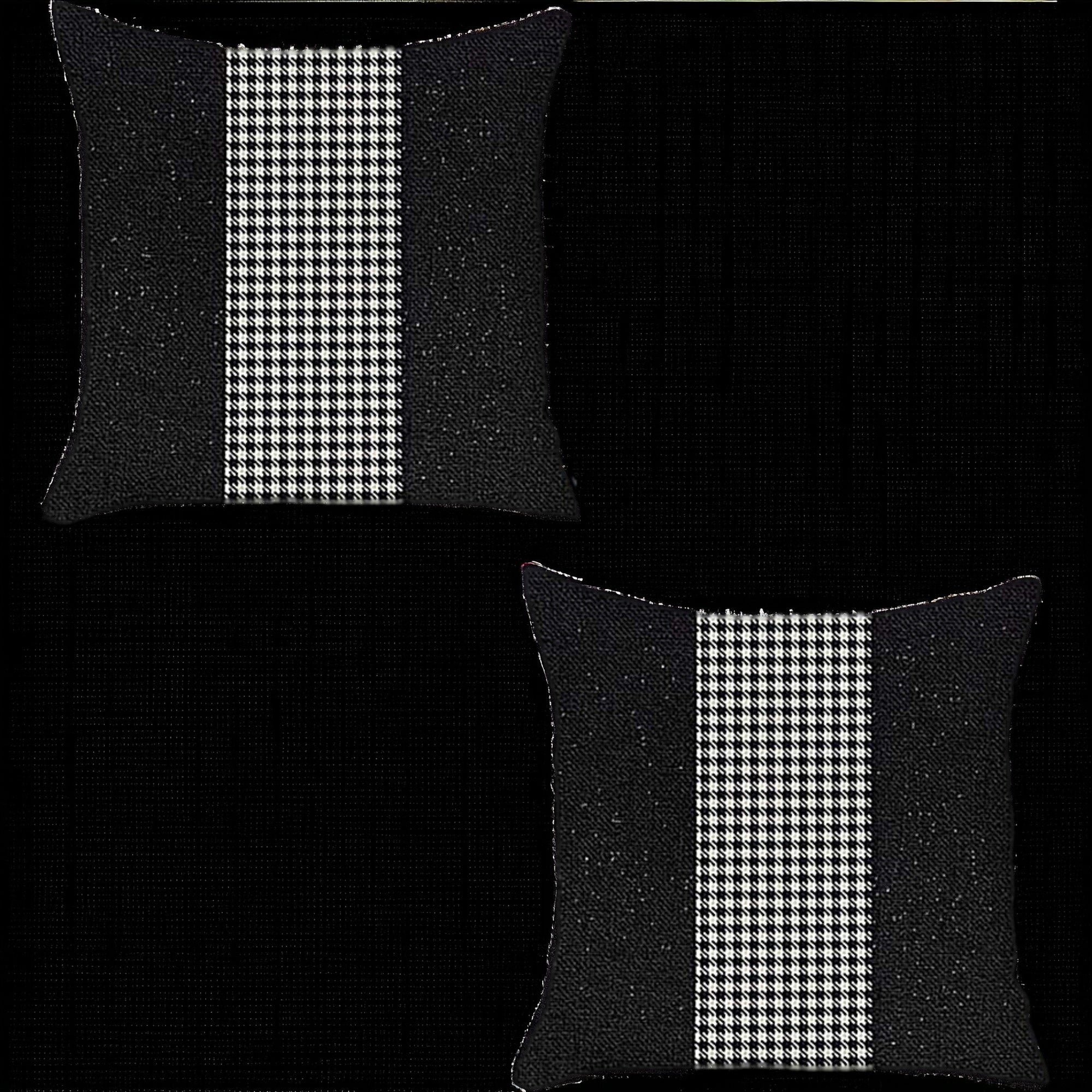 Set Of Two 18" X 18" Black And White Polyester Houndstooth Zippered Pillow