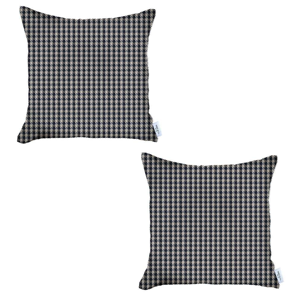 Set Of Two 18" X 18" Black Polyester Houndstooth Zippered Pillow