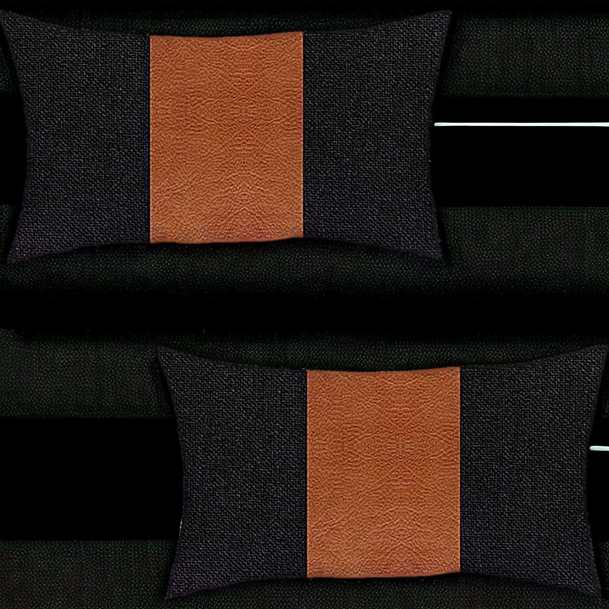 Set Of Two 20" X 12" Black And Brown Polyester Geometric Zippered Pillow