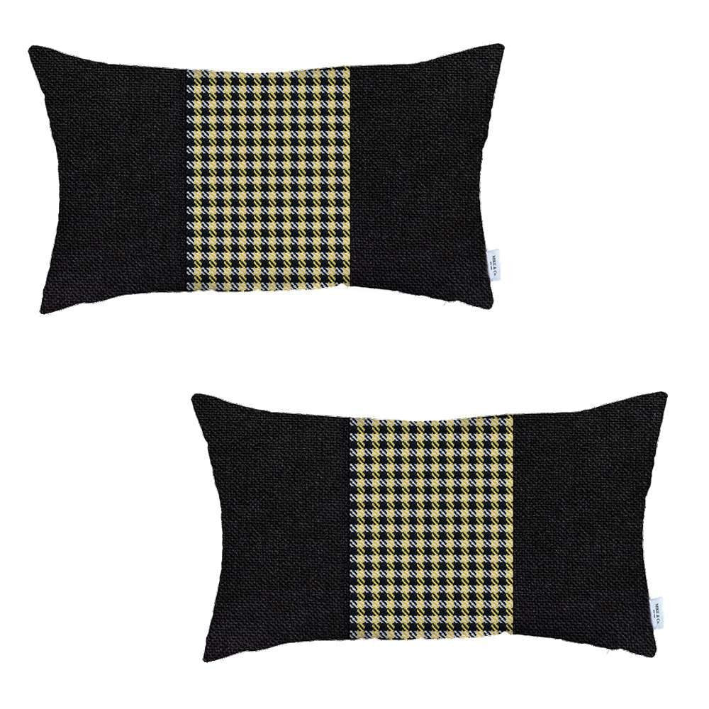 Set Of Two 20" X 12" Black And Yellow Polyester Houndstooth Zippered Pillow