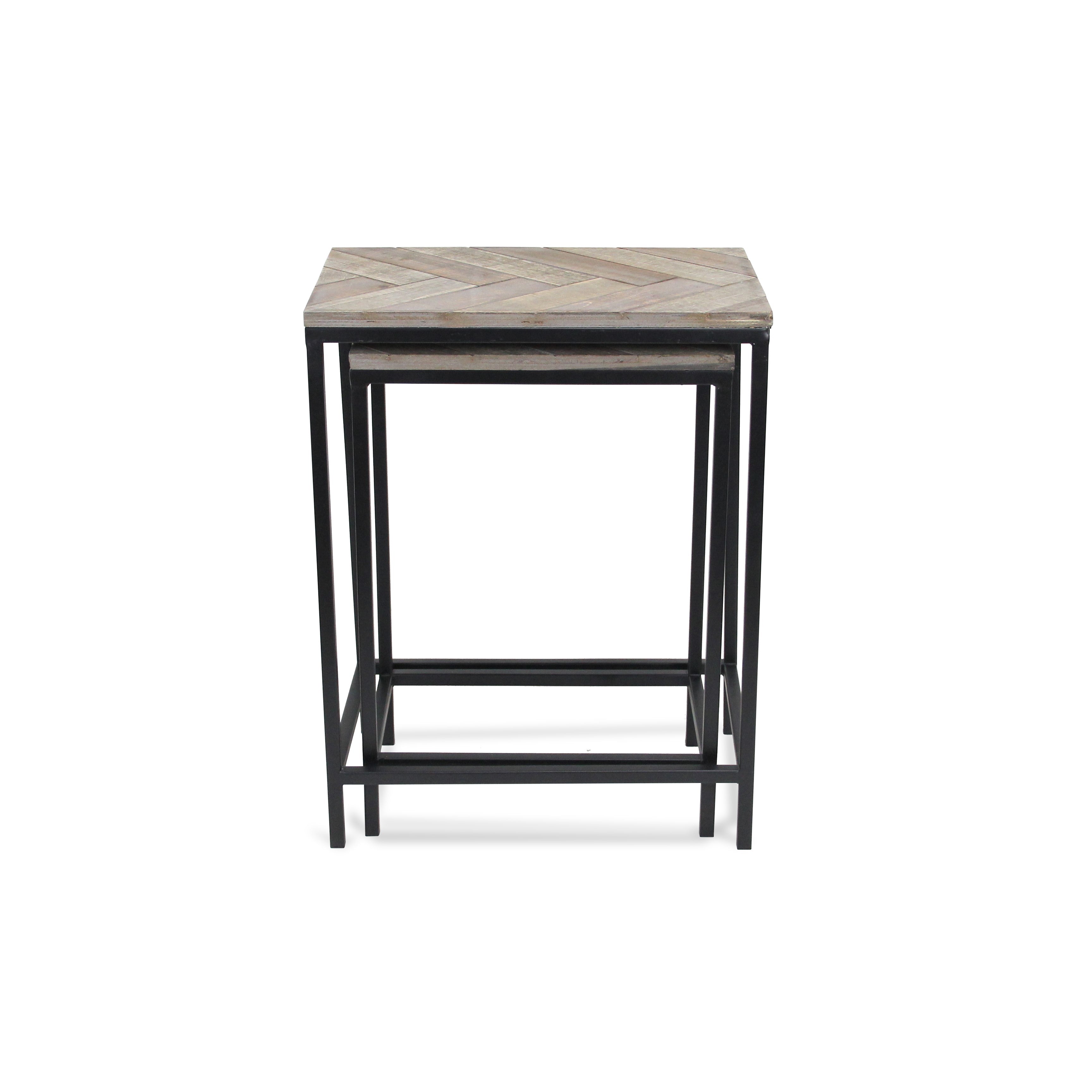 Set Of Two 24" Black And Brown Solid Wood And Steel Nested Tables