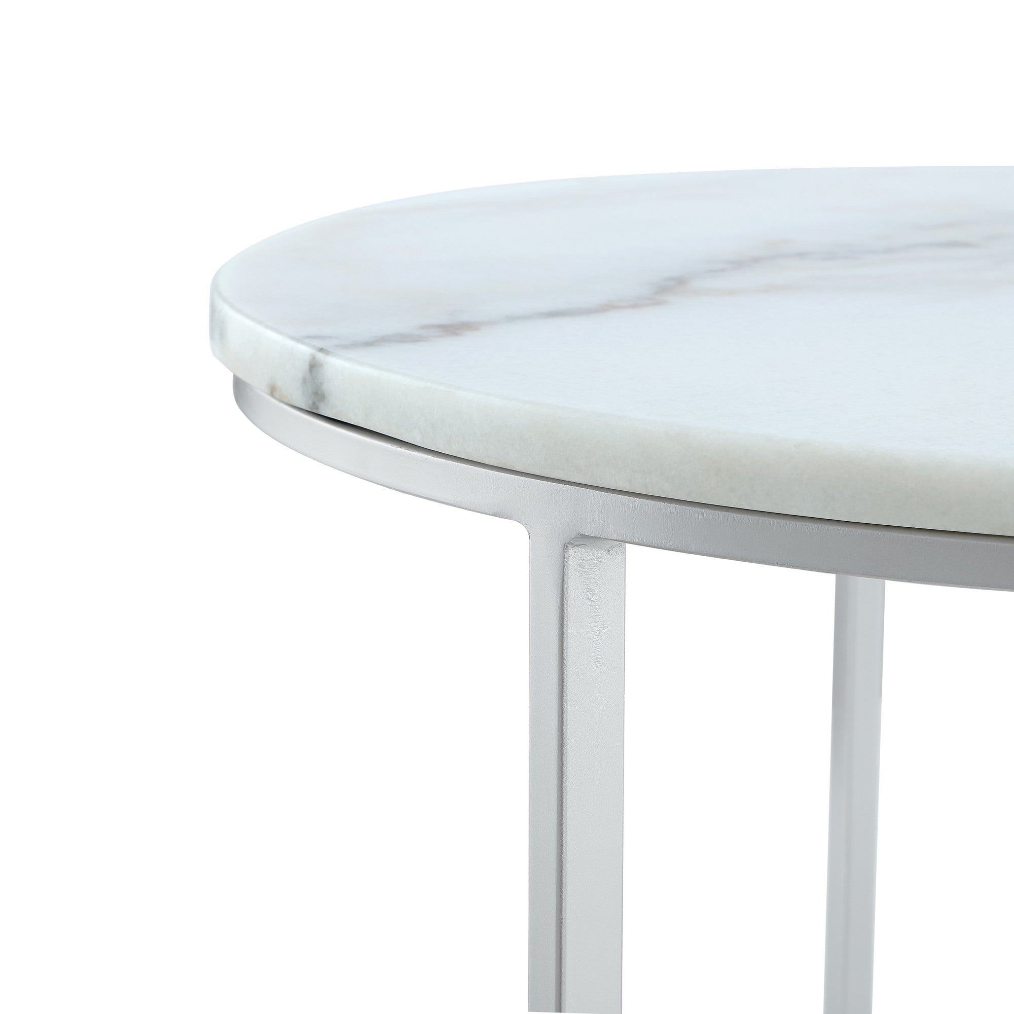 Set of Two 31" White And Silver Genuine Marble And Iron Round Nested Coffee Tables