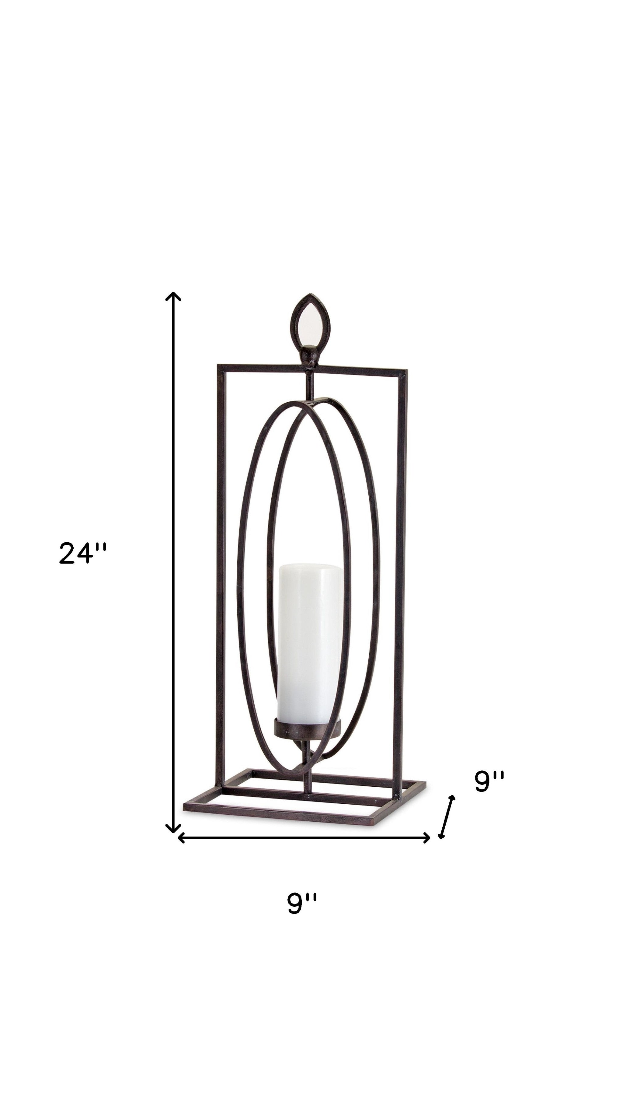 Set of Two Black Iron Ornate Tabletop Hurricane Candle Holders