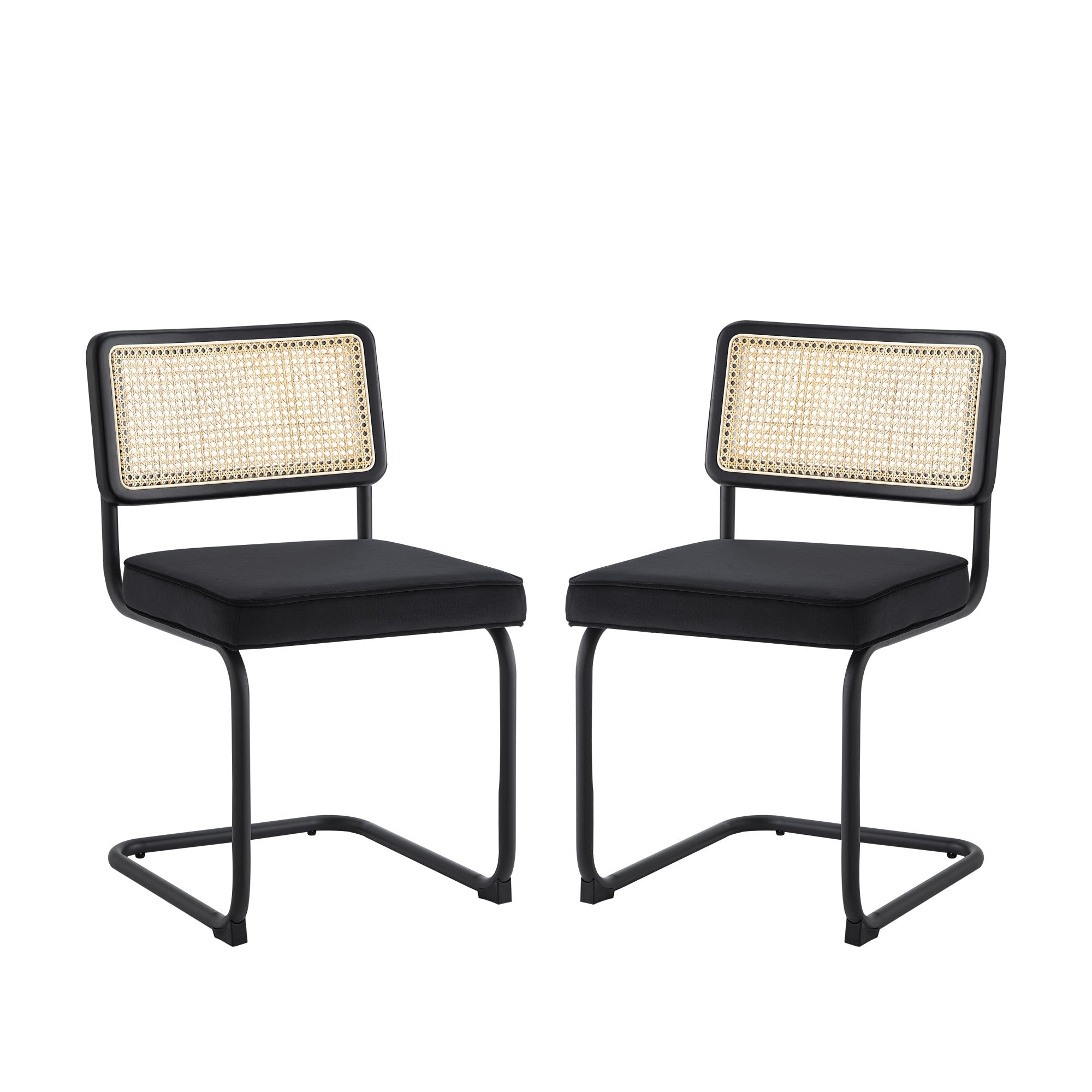 Set of Two Black Upholstered Velvet Dining Side Chairs