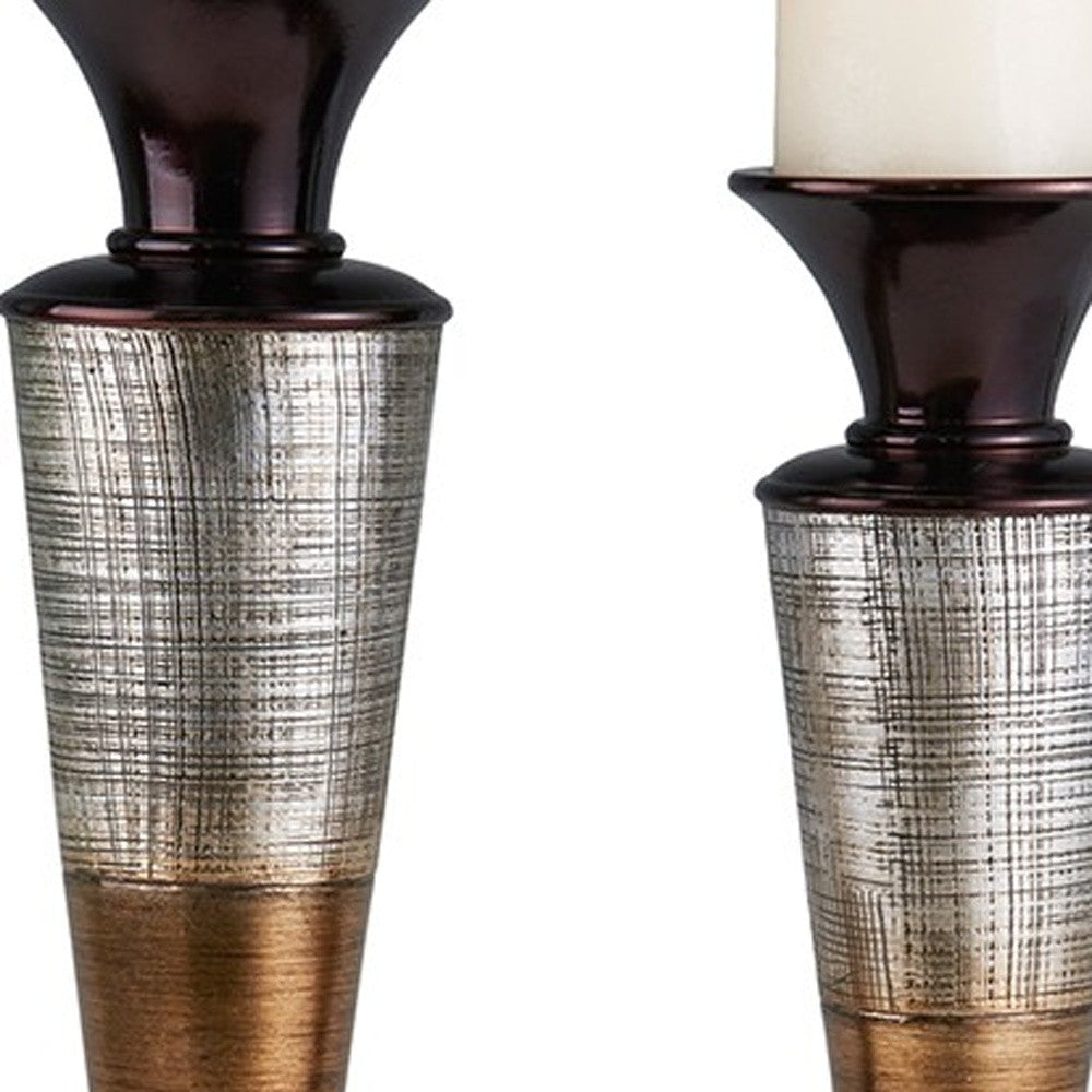 Set Of Two Silver and Brown Pillar Tabletop Pillar Candle Holder