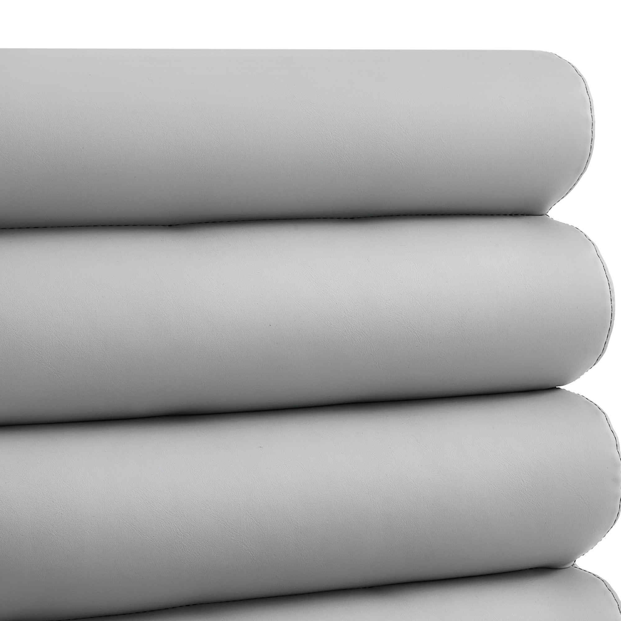 Set of Two Tufted Gray And Silver Metallic Upholstered Faux Leather Dining Side Chairs
