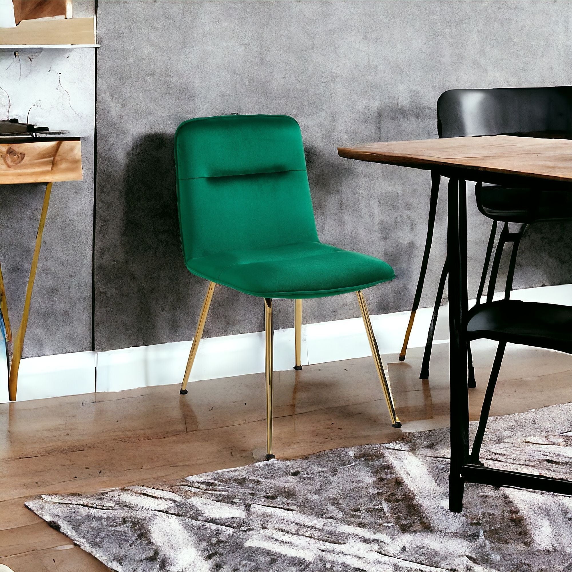 Set of Two Tufted Green And Gold Upholstered Velvet Dining Side Chairs