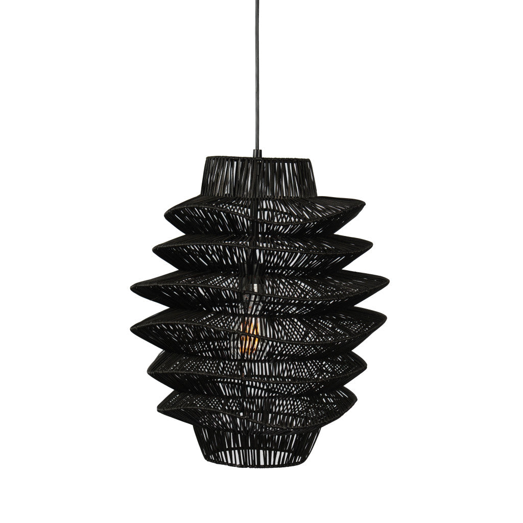 Single Rattan Dimmable Ceiling Light With Black Shades