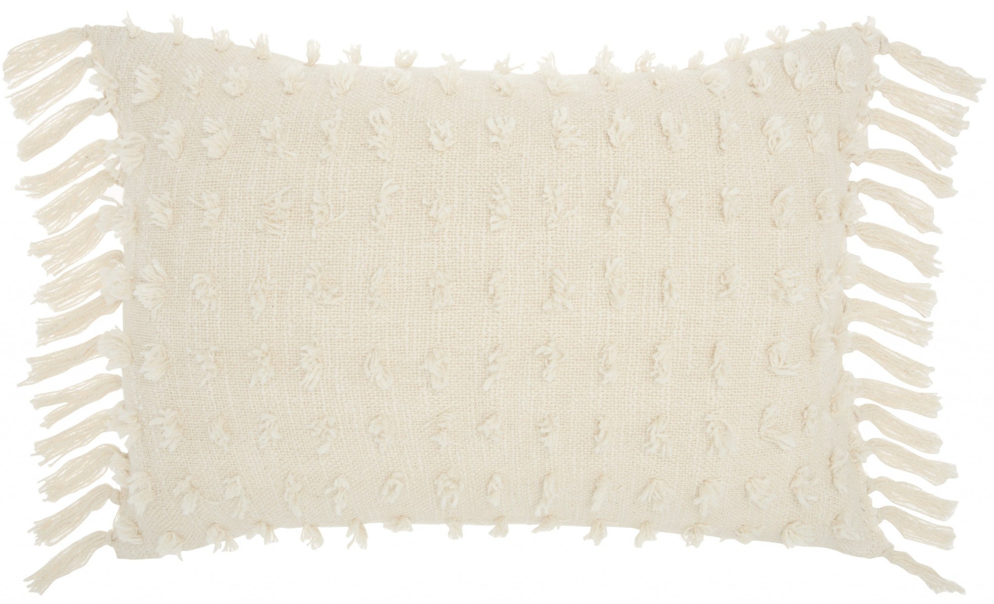 Bring in a touch of textural design to your living room aesthetic with this Tassel Detailed White...
