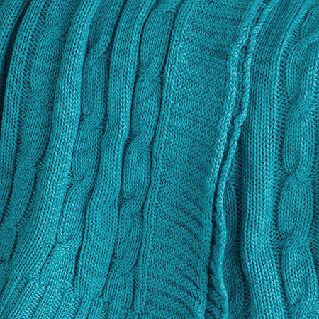 Teal Blue Knitted 100% Cotton Throw Blanket