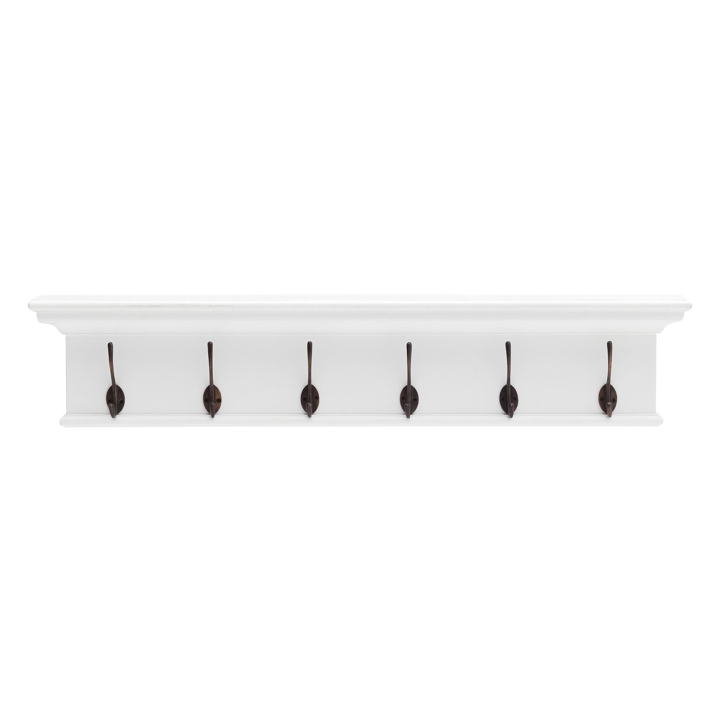 Traditional Classic White Wood Six Hook Hanging Coat Rack