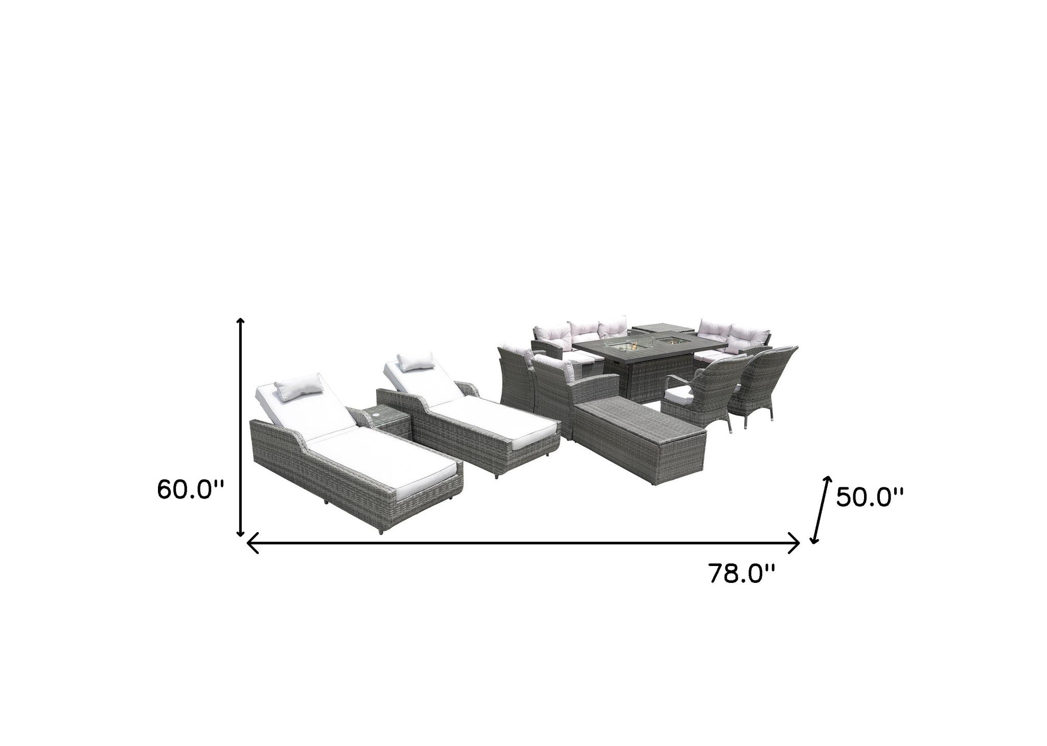 Twelve Piece Outdoor Gray Wicker Multiple Chairs Seating Group Fire Pit Included With Cushions