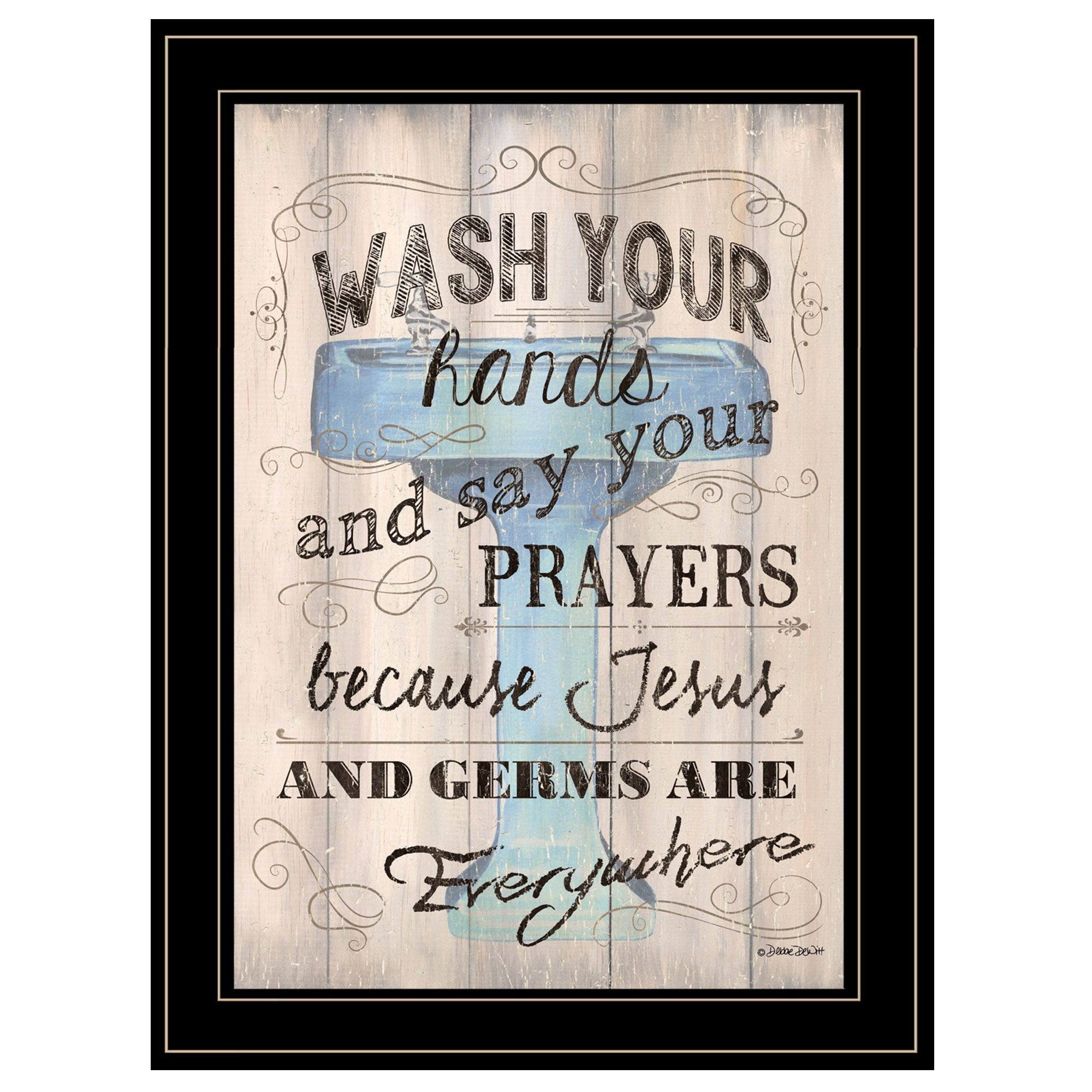 Wash Your Hands Jesus and Germs Black Framed Print Wall Art