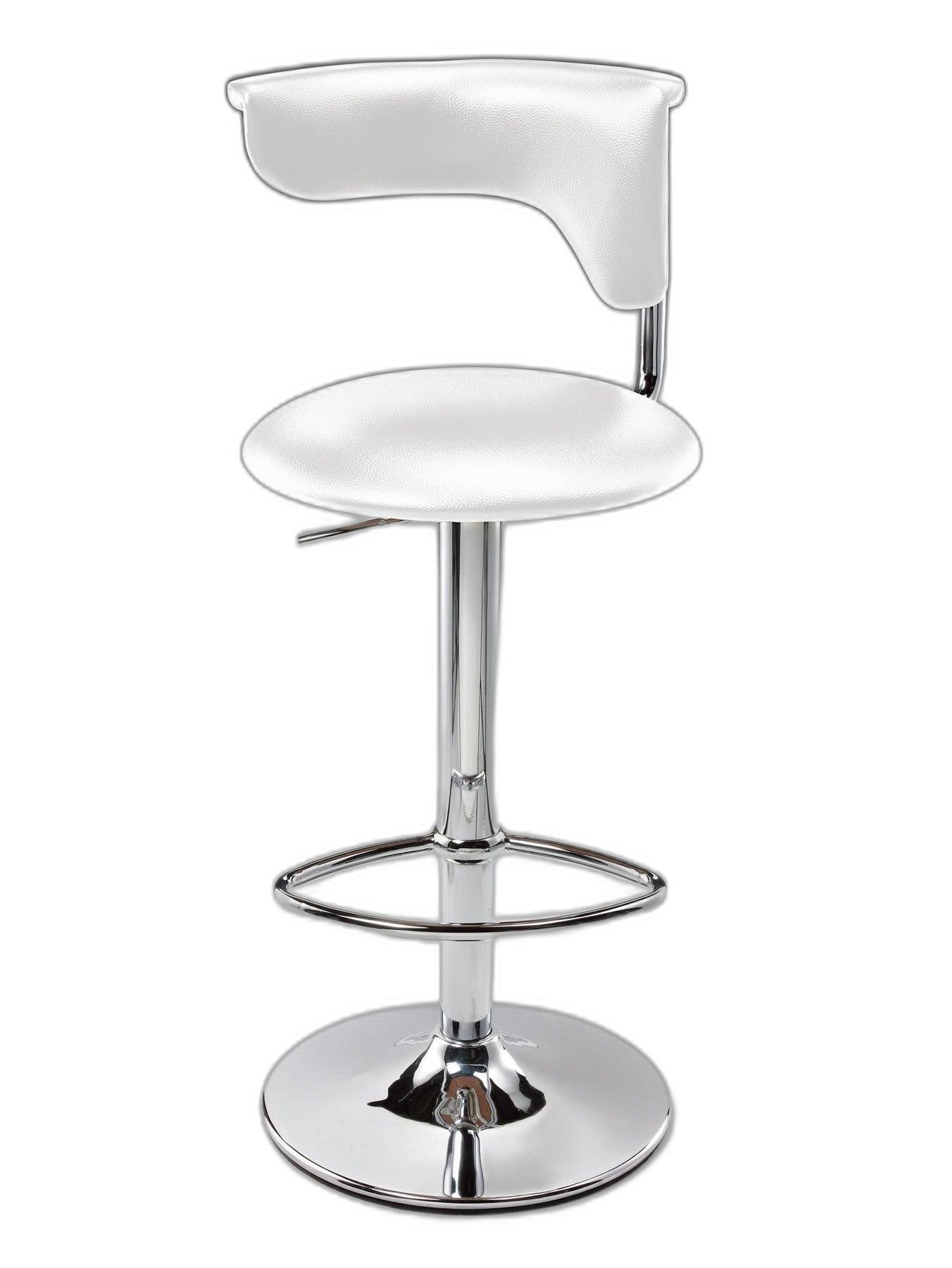 White And Silver Faux Leather And Metal Low Back Adjustable Height Bar Chair