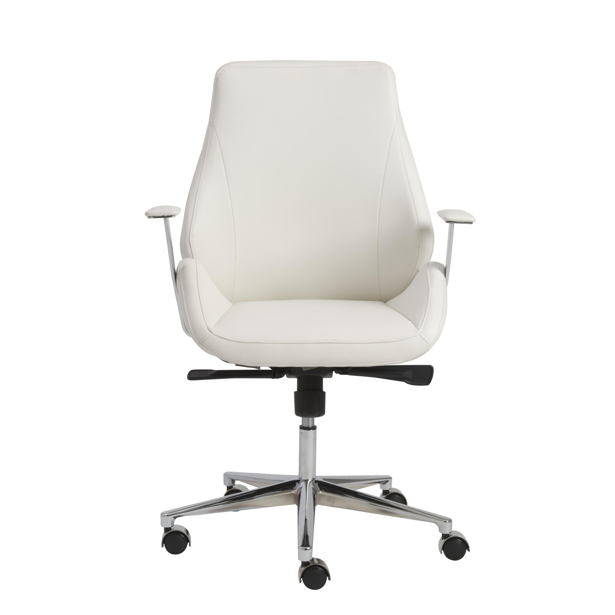 White Faux Leather Seat Swivel Adjustable Task Chair Leather Back Steel Frame
