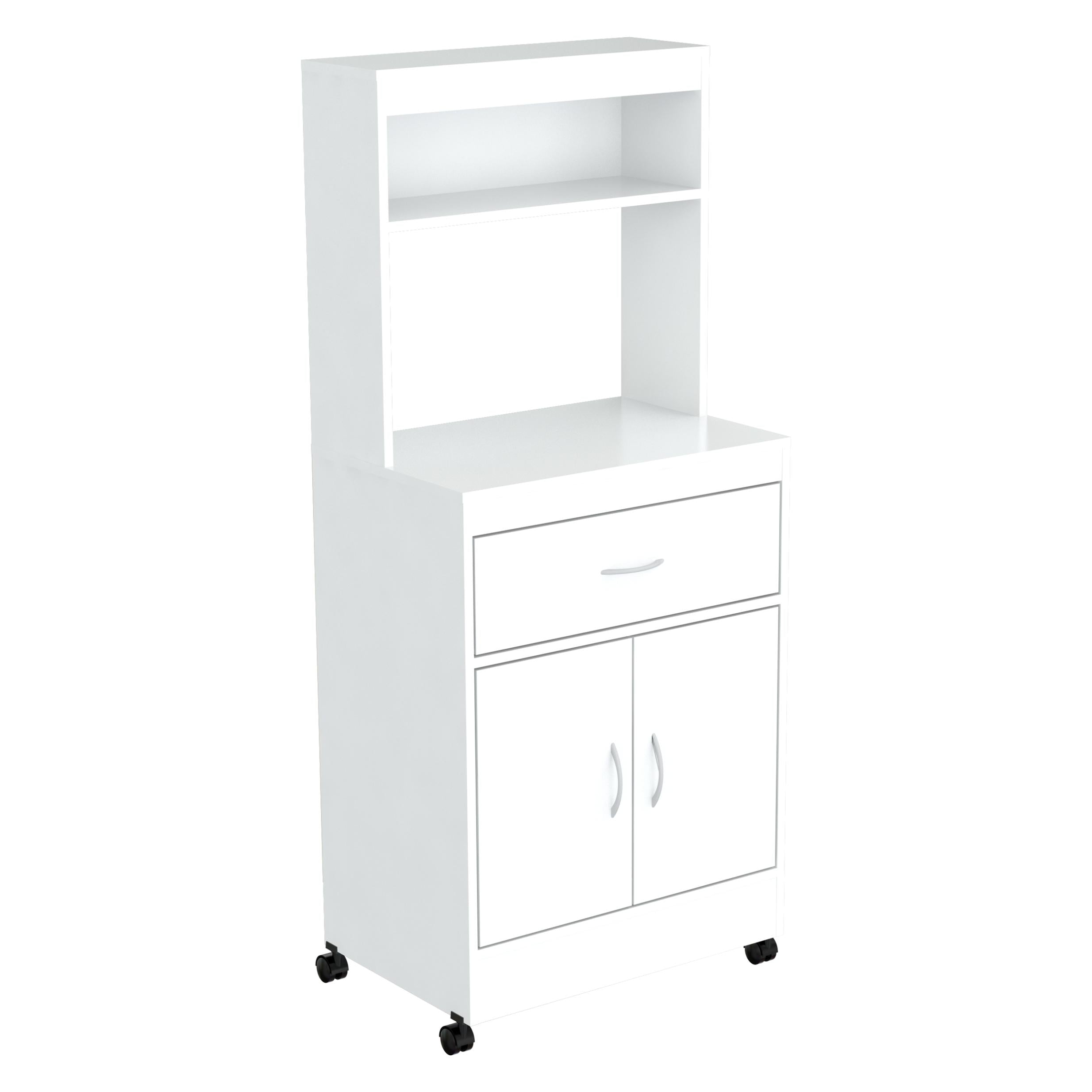 White Finish Wood Microwave Cabinet With Two Doors And Drawer