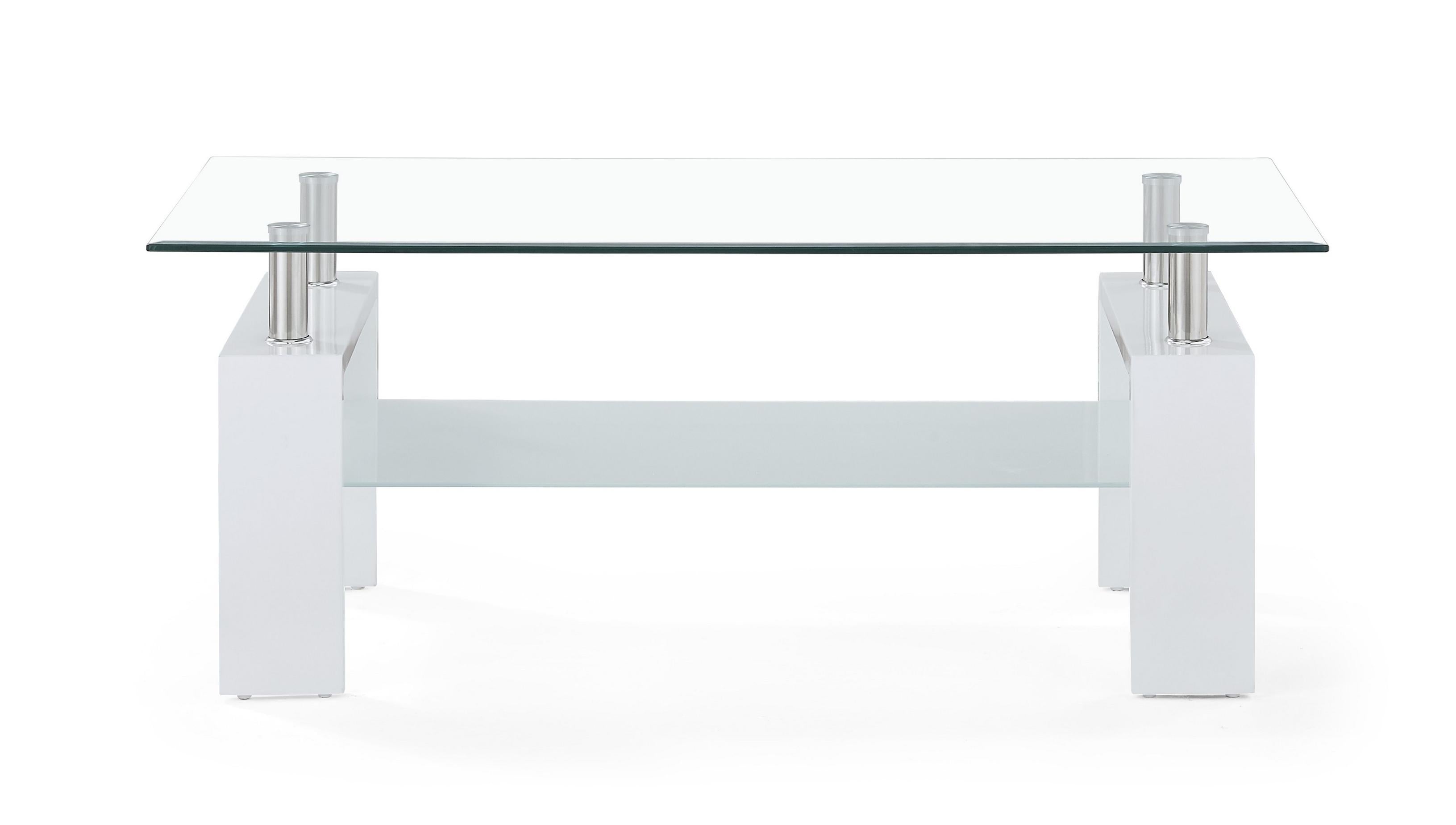 White Glossy Leg Coffee Table With Rectangular Clear Glass Top