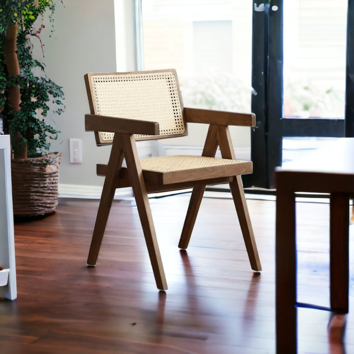 This yellow and brown rattan cross back arm chair is not only good looking, but it also...